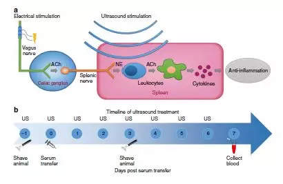 这两篇论文表明,超声刺激有望替代可植入装置,用于治疗适用于神经调节疗法的疾病。然而,非侵入性超声波对于类风湿性关节炎的应用潜力还需要进一步的研究,相关临床试验正在进行中。