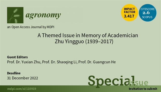 Agronomy:武汉大学朱玉贤院士、何光存教授与李绍清教授联合主持“纪念朱英国院士专题特刊”│MDPI 特刊征稿 |