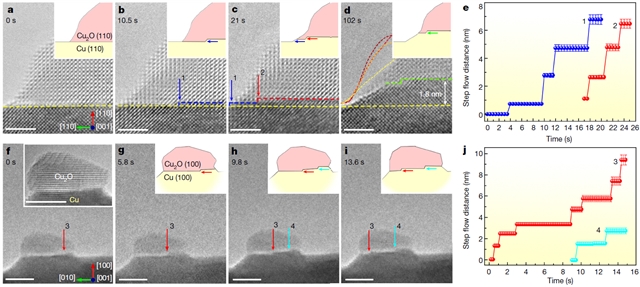 图4:Cu2O→Cu界面间歇式相变的机理研究。