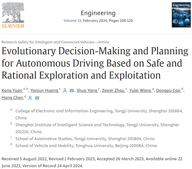 同济大学研究团队:基于安全合理探索与利用的自动驾驶自进化决策规划Engineering |