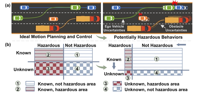 自动驾驶车辆在增强安全性、降低能源消耗和优化交通流等方面存在巨大潜力,已成为智能交通系统发展的核心环节之一。随着智能驾驶中先进功能的不断增加,其运行阶段的安全至关重要,主要聚焦于三个典型安全问题:功能安全(ISO 26262)、预期功能安全(ISO 21448)及网络安全(ISO 21434)。其中,预期功能安全既是当前学术研究热点,也是高阶自动驾驶应用面临的直接挑战。预期功能安全旨在处理潜在危险行为,包括与规格、性能和态势感知相关的不足或限制,合理可预见的误用,以及环境影响(其他用户、无源基础设施、天气及电磁干扰等)。当前自动驾驶的运动规划和控制技术也存在属于预期功能安全范围的问题。例如,控制层内的模型失配等不确定性将不可避免地导致未来时域内的跟踪误差,而规划层并未考虑该控制误差在规划周期内的影响。