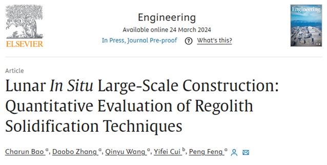 引用信息:Charun Bao, Daobo Zhang, Qinyu Wang, Yifei Cui, Peng Feng. Lunar In Situ Large-Scale Construction: Quantitative Evaluation of Regolith Solidification Techniques. Engineering. 2024.