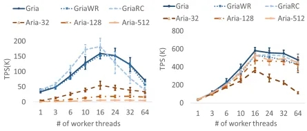Gria有如下特点。第一,Gria 的批处理大小会根据前一批中提交的事务数自动缩放,这样能减少大量事务中止的情况。第二,Gria的事务会读取同一线程的先前执行事务的写入数据,这能减少在低并发场景下的冲突率。第三,Gria使用多版本结构进行设计,这可以避免写后写冲突。并且我们还设计了重排机制和冲查策略来减少事务冲突。