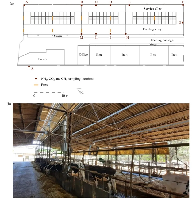 欧洲奶牛通常饲养在自然通风的牛舍中,目前对牛舍排放的研究多集中在北欧地区。地中海地区的牛舍常采用开放式设计,并配备冷却系统以缓解高温对奶牛福利的影响。然而,目前对气体排放与环境因素之间关系的研究相对较少,特别是在温暖季节。