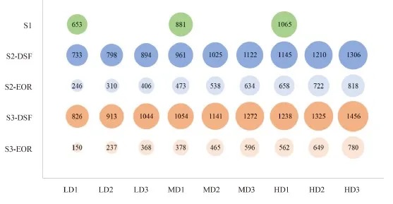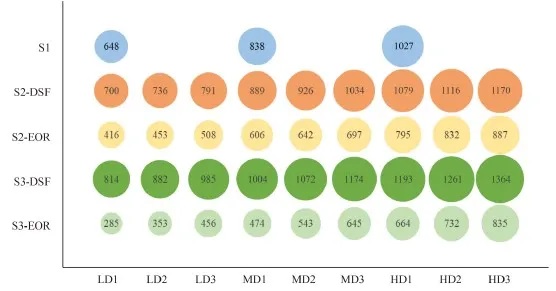 如图3所示,在相同的参数条件下,对比了不同场景下DCL和ICL的碳足迹和平准化成本。在S1场景下,ICL的碳足迹是DCL的1.2倍,ICL的平准化成本则是DCL的1.05倍。在S2场景下,DCL的碳足迹稍稍多于ICL,ICL的平准化成本则是DCL的1.11倍左右。在S3场景下,ICL的碳足迹略多于DCL,同时其平准化成本是DCL的1.06倍左右。综上所述,ICL比DCL产生更多的二氧化碳排放,而在DSF存储方面没有竞争优势。相反,在EOR封存的情况下,更多的CO2捕获意味着更高的收益,ICL具有更大的优势。