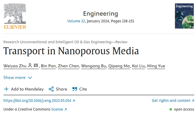 Weiyao Zhu, Bin Pan, Zhen Chen, Wengang Bu, Qipeng Ma, Kai Liu, Ming Yue. Transport in Nanoporous Media. Engineering, https://doi.org/10.1016/j.eng.2023.05.014