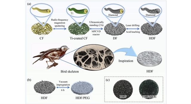 Zihao Zhao, Xurui Feng, Daili Feng, Chengming Li, Yanhui Feng, Junjun Wei. Bird skeleton-inspired 3D hollow diamond-enhanced PEG composite PCM for photothermal conversion and thermal management. Front. Energy, https://doi.org/10.1007/s11708-025-0991-7