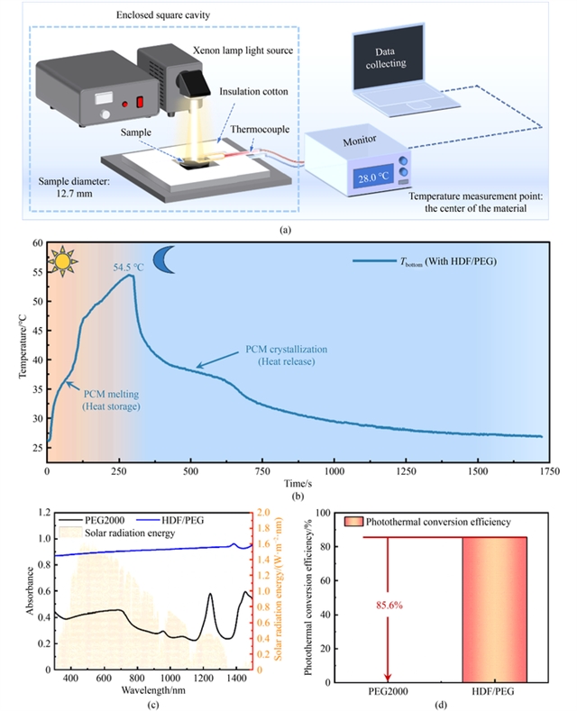 在全球能源结构转型的背景下,开发高效储能技术是平衡可再生能源间歇性与能源需求连续性的核心挑战。相变储能技术通过材料相变过程中的潜热吸收与释放,成为实现热能时空调控的重要手段。其中,聚乙二醇(PEG)因高储能密度、无毒性和化学稳定性备受关注,但其低热导率、液态泄漏及几乎为零的光吸收能力,严重制约了其在光热转换和电子热管理中的应用。