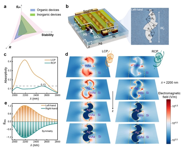研究人员设计了一种类“S”型手性超表面结构,其可通过左、右旋圆偏振光激发显著差异的局域表面等离激元共振,使原本不具备左/右旋光分辨能力的InAs材料在近中红外波段实现对左/右旋光的显著差异化吸收。