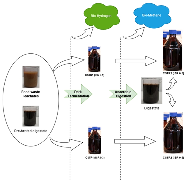 摘要:本研究探讨了利用餐厨垃圾渗滤液通过两阶段工艺生产生物气的效果:第一阶段通过暗发酵制取生物氢气,第二阶段通过厌氧消化制取生物甲烷。实验结果表明,虽然暗发酵阶段的氢气产量相对较低,但后续的厌氧消化阶段实现了显著更高的甲烷产量和有机物降解率。本研究旨在通过优化工艺参数,提升这两种生物燃料的生产效率与产出水平。