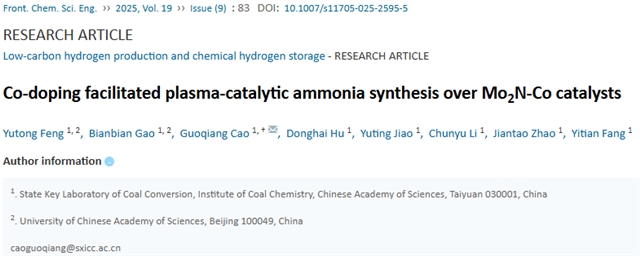 Yutong Feng, Bianbian Gao, Guoqiang Cao, Donghai Hu, Yuting Jiao, Chunyu Li, Jiantao Zhao, Yitian Fang. Co-doping facilitated plasma-catalytic ammonia synthesis over Mo2N-Co catalysts. Front. Chem. Sci. Eng., 2025, 19(9): 83 DOI:10.1007/s11705-025-2595-5