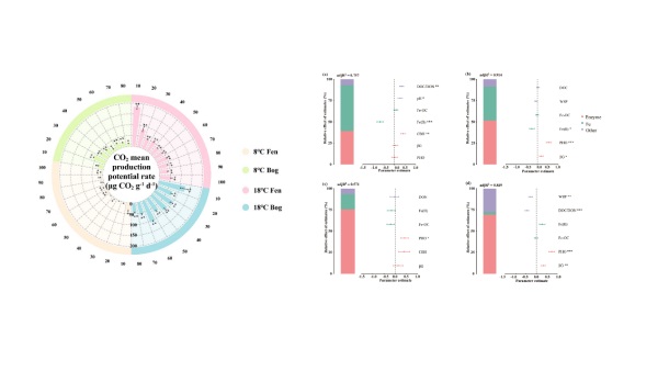 泥炭地作为关键的陆地碳库,其碳循环动态对全球气候平衡具有重要影响。当前,水位下降与气候变暖正威胁泥炭地碳汇功能。此前研究表明,“酶闩”与 “铁门”是湿地碳动态重要的调控机制。这两种机制的适用场景、对碳动态调控的相对重要性,以及温度是否会改变它们的作用优先级,是该领域亟待解决的核心问题。