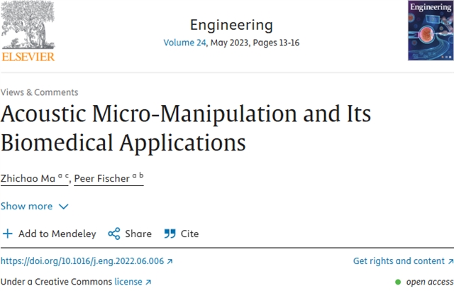 引用信息:Zhichao Ma, Peer Fischer. Acoustic Micro-Manipulation and its Biomedical Applications [J]. Engineering, 2023, 24(5): 13–16.