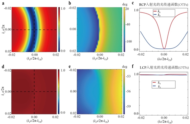 团队利用电子束光刻和反应离子刻蚀技术成功制备了PCS成像器样品,并将该器件与传统显微成像系统相结合(见图6)。在左旋圆偏振光(LCP)入射下,CCD中观察到的图像保留了入射图案信息,呈现出清晰的明场成像效果。当入射光的圆偏振态切换至右旋圆偏振光(RCP)时,CCD中则显示出入射图案的清晰边缘。这些结果验证了手性PCS成像元件在实时光学图像处理中的双重功能,且成像模式能够通过入射光的圆偏振态动态切换,展现了其在光学应用中的灵活性与实用性。