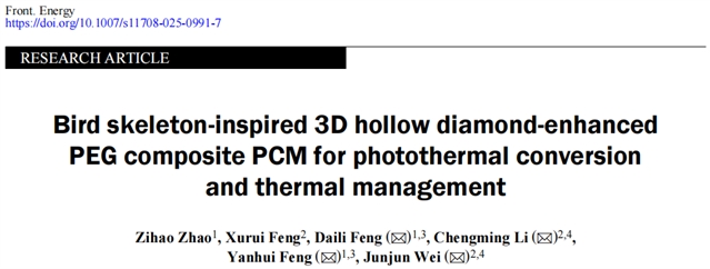 Zihao Zhao, Xurui Feng, Daili Feng, Chengming Li, Yanhui Feng, Junjun Wei. Bird skeleton-inspired 3D hollow diamond-enhanced PEG composite PCM for photothermal conversion and thermal management. Front. Energy,