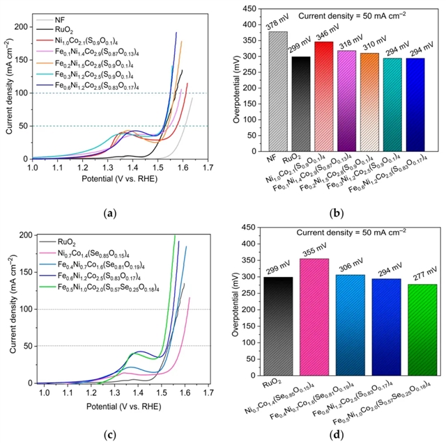 新型铁掺杂镍钴硫化物、硒化物及硫硒化物:高效稳定的析氧反应电催化剂 | MDPI Solids |
